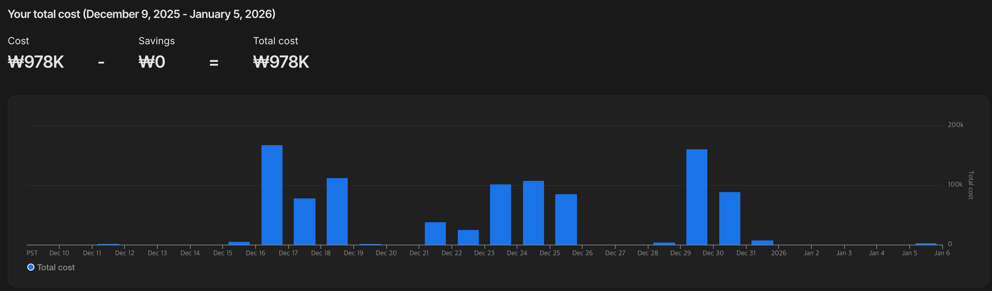 - 잦은 테스트로 인해 한 달에 약 100만 원 가량의 과금이 발생했습니다.